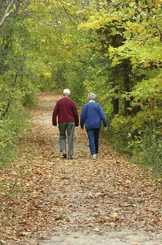 Personas mayores viviendo la experiencia de activarse para una vida más sana, valorando los beneficios que trae al cuerpo, mente y alma la aventura de caminar y dialogar al aire libre.